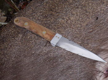 | (2006.12.10)晴れ あはっ 此処も跳んで来たんだぁ(^^; さっき駆け戻った山道を又下りながら呆れた この登山道は人が利用せずに 久しく 年々崩壊を続け急な斜面隣横切り或は抜け落ち 落とし穴状に成ってしまう 手掛りには張り渡されたロープ それを頼りに一歩々足元を固め 冷や汗かきながらの行き来と成って居た 『#%&@・・・・』 無線機の向こうで勢子ががなりたててる? 奥に向ったと言ってるようだ 追い込みに掛かり中段まで 降り掛けていたのを回れ右逃走径路を塞がんと 慌て先程構えた地点に駆け戻る 視線は駆け抜けるルートを外さず 足元に目を落とす余裕は無かったようで どっと冷や汗が。。 (2006.12.24)晴れ 朝いちの作戦は 四本の少数で囲まんとならん この時期植物採取の住民が入ることから手配を急いだ 勢子が追い 上げる尾根口から反対側の待ち一本 位地の確保を頼み二人を伴い急な谷を登り出す 一番下は山道の崩れかけた 丸木橋の袂 本命と思われる中段に今シーズンから加わったベテランを 其処から更に登り掛けると 人が付けたかと 見間違うばかりの 踏み込まれた獣路3本 中段の待ちを10mばかり上げる。。。 これが後の失敗に繋がる迷いとは その時は気づく事さえ無かった 更に高度を稼ぎ麓の人家が遥か下方に望め間も無く尾根のテッペンに 矢先を考え 反対側に主とする射場を構え腰を下ろし 放犬を促す この尾根の先勢子から離したとの連絡。。。。。。。。。。。。。。 一分もせず 起したモノに付いた犬はUターン 下の広く太い本流向け落としてしまった |