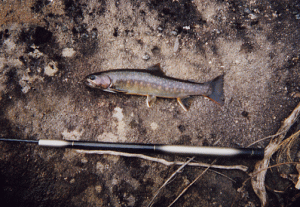 | 糸 | 使用する銘柄はアクタス 本流の大型魚は 1号の道糸に0.8号のハリス 極一般の渓 では 0.8号に0.6号のセット 通し仕掛けは使用しない 今流行の細糸は考えていない |